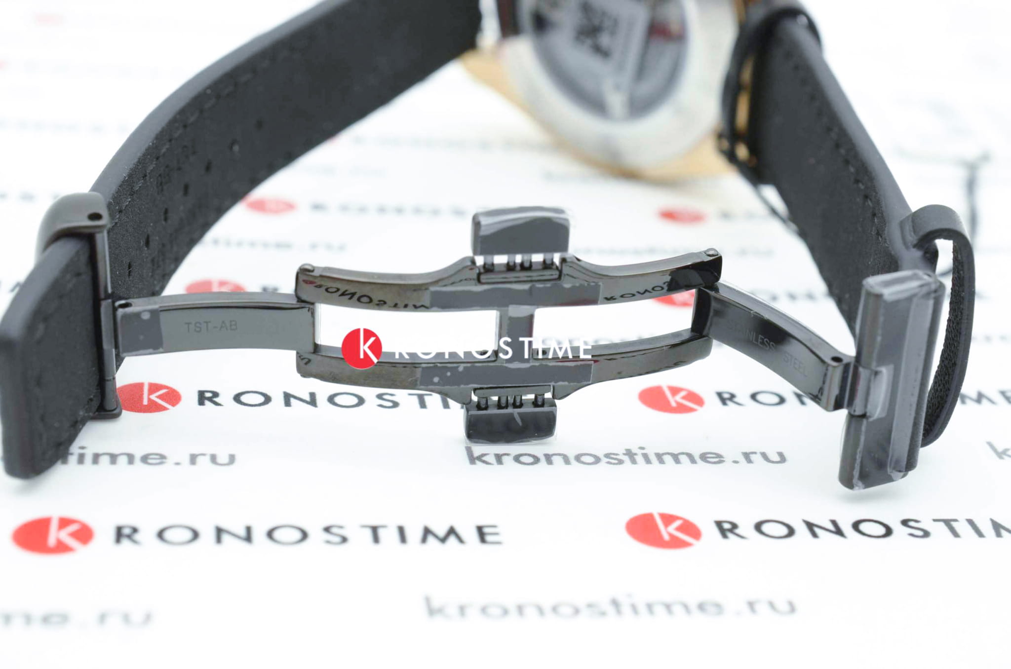 Спортивный и динамичный дизайн аксессуара никого не оставит равнодушным, прозрачная задняя крышка корпуса имитирует форму рулевого колеса гоночного болида. Часы работают за счёт калибра Powermatic 80Powermatic 80Эксклюзивный калибр от швейцарской компании ETA с увеличенным запасом хода до 80 часов за счёт удлинённой заводной пружины. Характеризуется улучшенной системой спуска со сниженным трением. с запасом хода 80 часов, они не нуждаются в регулярном заводе. Сапфировое стекло имеет двухстороннее антибликовое покрытие. Ремешок из натуральной кожи с перфорацией. Керамический безельБезельВнешний ободок, закрепляющий стекло. В спортивных часах так называется поворотное кольцо с делениями на циферблате, выполняет роль таймера – замеряет отрезки времени на шкале. Неподвижный безель – элемент декора. Однонаправленно вращающийся безель на дайверских часах позволяет фиксировать моменты погружения и выныривания на поверхность.. Люминесцентная подсветкаЛюминесцентное покрытиеПозволяет считывать показания времени в темноте. Производители наносят на стрелки, часовые индексы, безель или поверхность циферблата светонакопительный состав, дающий холодное свечение.. . Апертура даты. Габариты: 42 x 42 x 12,9 мм.