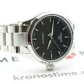 Лаконичный черный циферблат с делениями привлекательно смотрится на запястье, отлично сочетаясь с серебристыми переливами корпуса и серебристым браслетом. Часы оснащены механизмом Swissmatic с высокой точностью хода. Сапфировое стекло устойчиво к образованию царапин. Апертура даты. Габариты: 43 x 43 x 12,3 мм.