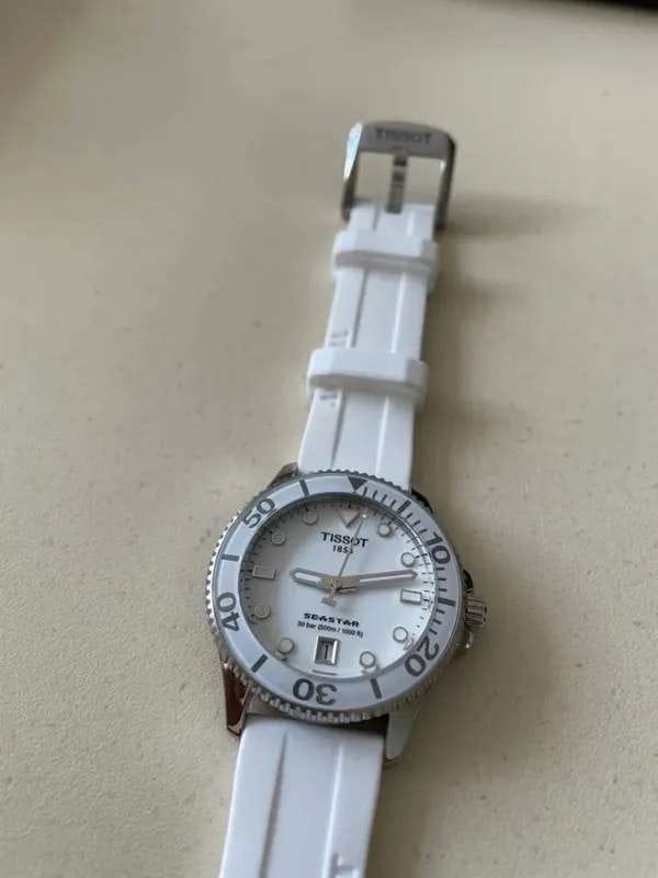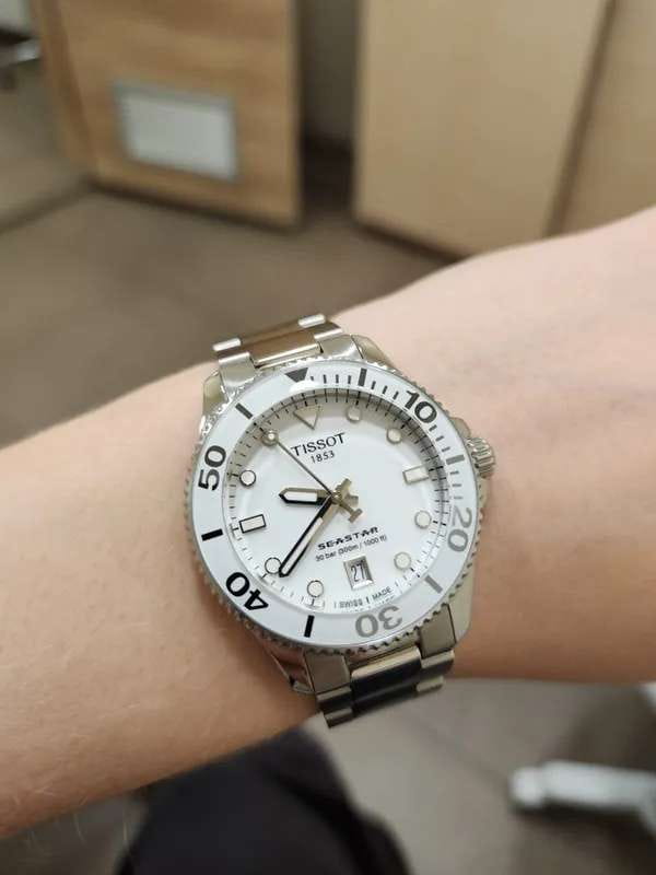 Tissot Seastar 1000 36mm (модель T120.210.11.011.00) – элегантные часы, сочетающие стильный дизайн и высокую функциональность. Корпус диаметром 36 мм и толщиной 9,67 мм выполнен из нержавеющей стали 316L, обеспечивая прочность и долговечность. Белый лакированный циферблат с индексами защищён сапфировым стекломСапфировое стеклоПрочный и надёжный материал из кристалла сапфира синтетического происхождения, характеризующийся особой твёрдостью и устойчивостью к царапинам и повреждениям. с антибликовым покрытиемАнтибликовое покрытиеСлой оксида металла в 0,13-0,3 микрон, благодаря которому стекло часов не бликует и не отражает свет. Антибликовое покрытие уменьшает отражение света в 10 раз, обеспечивая отличную читаемость показателей циферблата., устойчивым к царапинам.