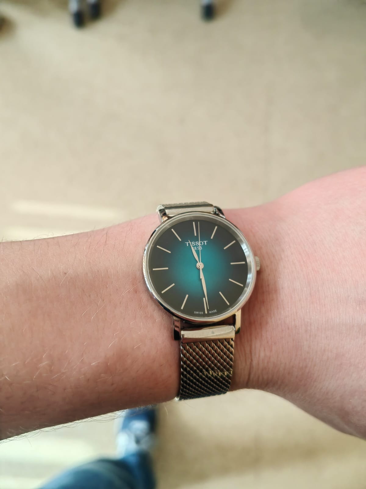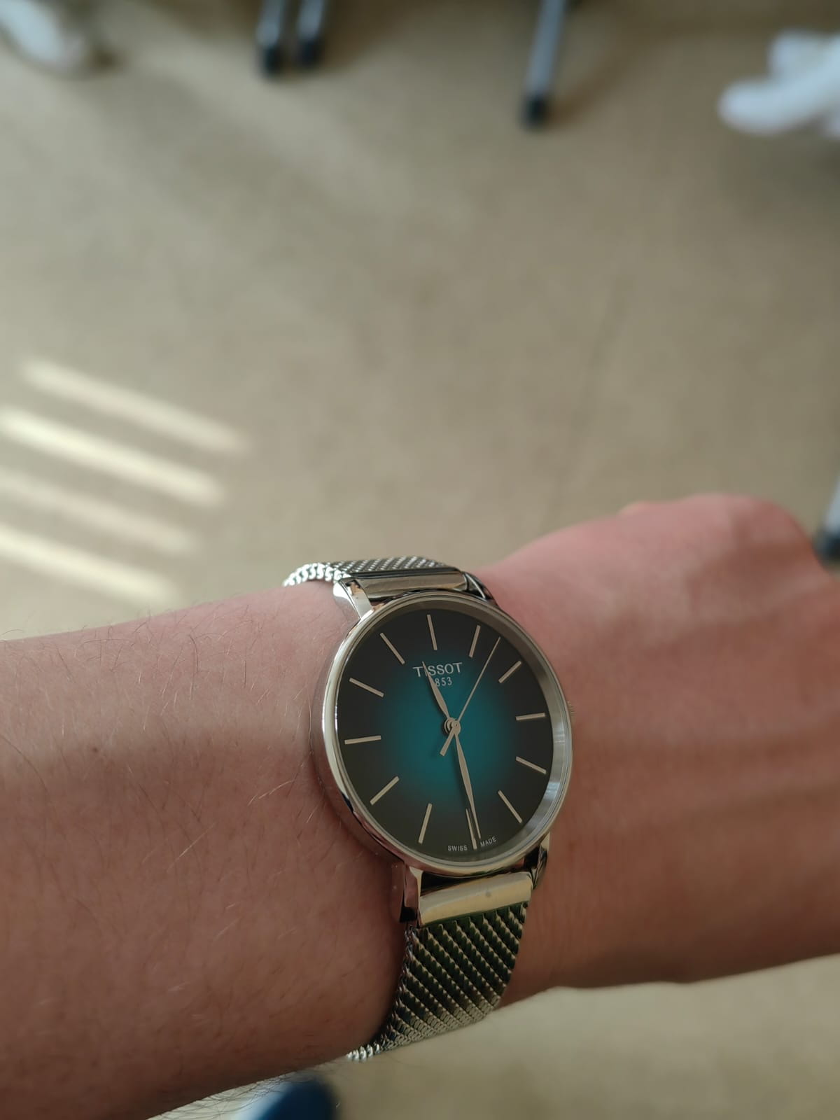 Tissot Everytime Lady T143.210.11.091.00 – элегантные женские часы, сочетающие современный дизайн и надёжность. Корпус диаметром 34 мм и толщиной 6,92 мм выполнен из нержавеющей стали 316L, обеспечивая долговечность и устойчивость к коррозии. Градиентный зелёно-чёрный циферблат придаёт модели уникальный и стильный вид, а его поверхность защищена сапфировым стекломСапфировое стеклоПрочный и надёжный материал из кристалла сапфира синтетического происхождения, характеризующийся особой твёрдостью и устойчивостью к царапинам и повреждениям., устойчивым к царапинам.