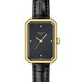 Tissot SRV 30mm — утончённая модель в винтажном стиле с элегантным акцентом. Корпус прямоугольной формы украшен PVDPVDУльтратонкое покрытие наносится в технике вакуумного напыления, сочетает в себе нитрид титана особой прочности со слоем золота или оксида хрома. Несёт в себе декоративную или защитную функцию.-покрытием в оттенке жёлтого золота, что придаёт часам благородный облик. Чёрный циферблат с лаконичными метками в виде точек подчёркивает минималистичный характер модели, а за точность отвечает швейцарский кварцевый механизм. Циферблат защищён сапфировым стекломСапфировое стеклоПрочный и надёжный материал из кристалла сапфира синтетического происхождения, характеризующийся особой твёрдостью и устойчивостью к царапинам и повреждениям., стойким к царапинам. Часы дополнены кожаным ремешком с классической пряжкой, что обеспечивает комфортную посадку на запястье и гармонично завершает дизайн.