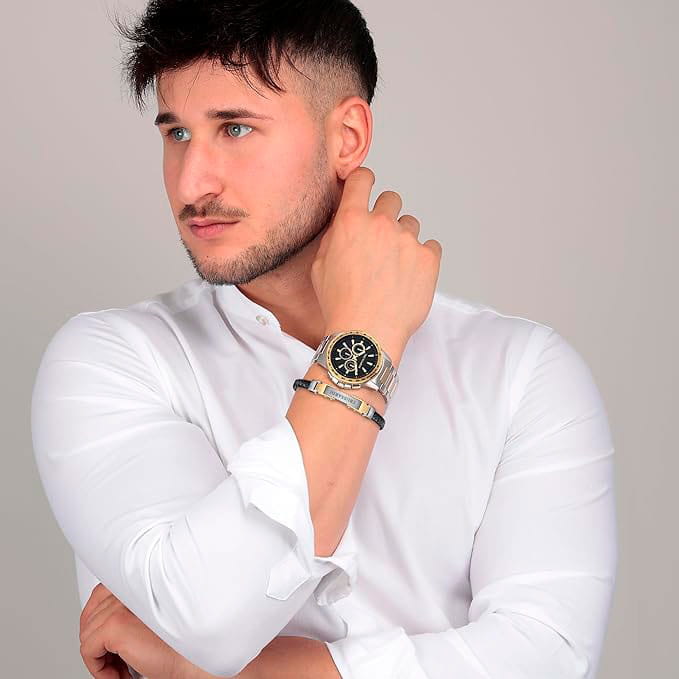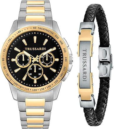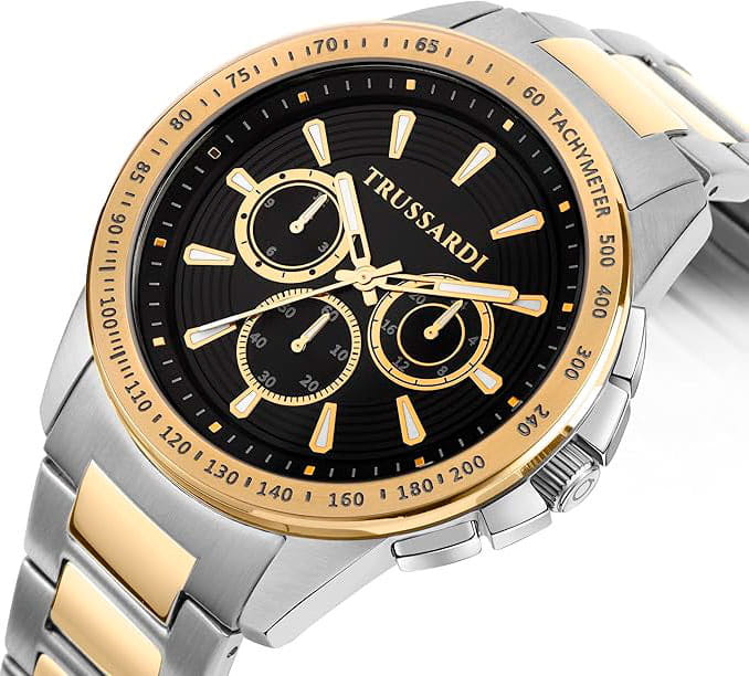 Итальянские мужские часы Trussardi T-Hawk R2453153003 - это стильный мужской аксессуар, который сочетает элегантный дизайн и практичность. Корпус выполнен из нержавеющей стали с безелемБезельВнешний ободок, закрепляющий стекло. В спортивных часах так называется поворотное кольцо с делениями на циферблате, выполняет роль таймера – замеряет отрезки времени на шкале. Неподвижный безель – элемент декора. Однонаправленно вращающийся безель на дайверских часах позволяет фиксировать моменты погружения и выныривания на поверхность. с IP-покрытиемIP-покрытиеМетод ионного напыления. Демонстрирует повышенную устойчивость к истиранию, окислению и химическим веществам. Под воздействием высокого давления и температуры около 1500°C молекулы металла надёжно соединяются с частицами корпуса часов., что обеспечивает долговечность и утончённый внешний вид. Шкала тахиметраТахиметрРазмеченная шкала, располагается на ободке или безеле часов. Тахиметр позволяет рассчитать скорость на определённом участке пути, расстояние измеряется в километрах или милях. на безелеБезельВнешний ободок, закрепляющий стекло. В спортивных часах так называется поворотное кольцо с делениями на циферблате, выполняет роль таймера – замеряет отрезки времени на шкале. Неподвижный безель – элемент декора. Однонаправленно вращающийся безель на дайверских часах позволяет фиксировать моменты погружения и выныривания на поверхность.. Надежное минеральное стеклоМинеральное стеклоМинеральное стекло представляет собой искусственно выращенный минерал кварца. Такое стекло отличается особой устойчивостью к повреждениям и царапинам. Уступает по некоторым качествам сапфировому стеклу. защищает циферблат от царапин и обеспечивает долговечность. Модель оснащена кварцевым механизмом, обеспечивающим высокую точность хода. Браслет из нержавеющей стали с частичным IP-покрытиемIP-покрытиеМетод ионного напыления. Демонстрирует повышенную устойчивость к истиранию, окислению и химическим веществам. Под воздействием высокого давления и температуры около 1500°C молекулы металла надёжно соединяются с частицами корпуса часов. с раскладной застёжкойРаскладная застёжкаТакой тип застёжки используется только на браслетах из металла. Она никогда не раскрывается полностью, происходит разделение на 2 и более частей. Раскладывающая застёжка снизит вероятность потери часов к минимуму. обеспечивает комфортное ношение. Водозащита 50 метров позволит защитить корпус от случайных брызг или капель дождя. Вынесенный циферблат с 24-х и 12- ти часовым указателем времени, а также вынесенный циферблат с хронографомХронографФункция позволяет измерять отрезки времени с особой точностью: часы, минуты, секунды. Верным признаком хронографа является наличие на циферблате 3 дополнительных окошек-счётчиков.. Стрелки и метки оснащены люминесцентным покрытиемЛюминесцентное покрытиеПозволяет считывать показания времени в темноте. Производители наносят на стрелки, часовые индексы, безель или поверхность циферблата светонакопительный состав, дающий холодное свечение., обеспечивающим отличную видимость даже при слабом освещении. Эта модель – отличный выбор для тех, кто ищет сочетание стиля, качества и функциональности. Часы станут не только полезным аксессуаром, но и выразительным элементом вашег