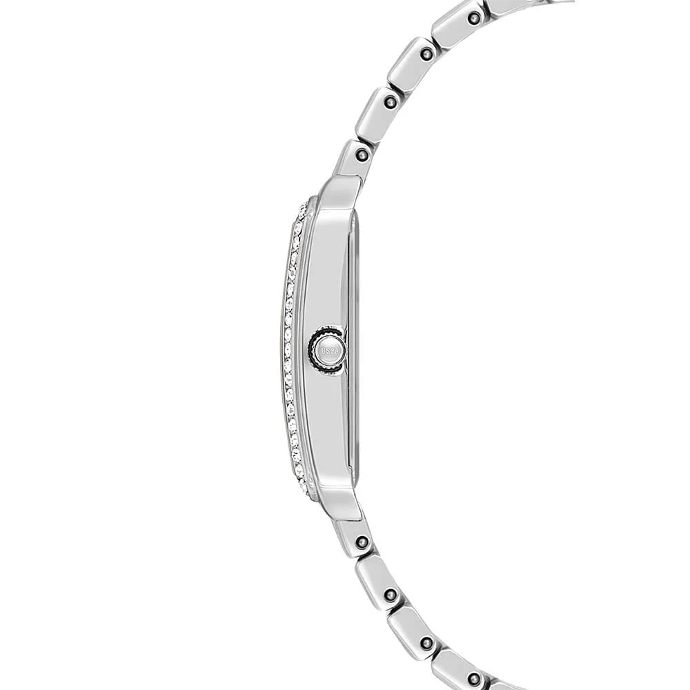 Женские наручные часы U.S. Polo Assn. Stile USPA2108-01 — это стильный и лаконичный аксессуар, выполненный в форме квадрата. Модель изготовлена из стали серебристого цвета, а безельБезельВнешний ободок, закрепляющий стекло. В спортивных часах так называется поворотное кольцо с делениями на циферблате, выполняет роль таймера – замеряет отрезки времени на шкале. Неподвижный безель – элемент декора. Однонаправленно вращающийся безель на дайверских часах позволяет фиксировать моменты погружения и выныривания на поверхность. украшен изысканными кристаллами, придающими часам роскошный вид. Циферблат с лаконичными центральными часовой и минутной стрелками. Защиту циферблата обеспечивает минеральное стеклоМинеральное стеклоМинеральное стекло представляет собой искусственно выращенный минерал кварца. Такое стекло отличается особой устойчивостью к повреждениям и царапинам. Уступает по некоторым качествам сапфировому стеклу., устойчивое к мелким повреждениям. Часы оснащены кварцевым механизмом, гарантирующим точность и минимальное обслуживание. Водонепроницаемость 3 АТМ позволяет использовать часы в повседневных условиях — при мытье рук или под лёгким дождём. Браслет выполнен из стали и оснащён раскладной застёжкойРаскладная застёжкаТакой тип застёжки используется только на браслетах из металла. Она никогда не раскрывается полностью, происходит разделение на 2 и более частей. Раскладывающая застёжка снизит вероятность потери часов к минимуму., обеспечивающей комфорт и уверенную фиксацию на запястье. Толщина корпуса составляет 8 мм, а его размер 23 мм, что делает часы компактными и удобными в носке. Эти часы станут универсальным аксессуаром для уверенных в себе женщин, которые ценят сочетание стиля, качества и эстетики — идеальный выбор для повседневного образа и торжественных случаев.