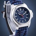 Женские швейцарские часы Victorinox I.N.O.X. V 241770. Сапфировое стеклоСапфировое стеклоПрочный и надёжный материал из кристалла сапфира синтетического происхождения, характеризующийся особой твёрдостью и устойчивостью к царапинам и повреждениям. с трёхслойным антибликовым покрытием. Корпус часов выполнен из нержавеющей стали 316L. Ремешок изготовлен из плетенной паракордовой стропы, длиной 2,5 метра и способной выдержать 250 кг. Влагозащита: 200 метров, позволит плавать, нырять и заниматься другими водными видами спорта. Стрелки и метки с люминесцентным покрытиемЛюминесцентное покрытиеПозволяет считывать показания времени в темноте. Производители наносят на стрелки, часовые индексы, безель или поверхность циферблата светонакопительный состав, дающий холодное свечение.. 12 и 24-часовой формат времени. В комплекте съемный защитный бампер.