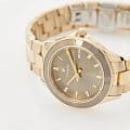 Циферблат защищен закаленным минеральным стекломМинеральное стеклоМинеральное стекло представляет собой искусственно выращенный минерал кварца. Такое стекло отличается особой устойчивостью к повреждениям и царапинам. Уступает по некоторым качествам сапфировому стеклу., что обеспечивает высокую устойчивость к царапинам и повреждениям. Окошко даты расположено в положении 3 часа, делая информацию максимально доступной. БезельБезельВнешний ободок, закрепляющий стекло. В спортивных часах так называется поворотное кольцо с делениями на циферблате, выполняет роль таймера – замеряет отрезки времени на шкале. Неподвижный безель – элемент декора. Однонаправленно вращающийся безель на дайверских часах позволяет фиксировать моменты погружения и выныривания на поверхность. с PVD-покрытиемPVDУльтратонкое покрытие наносится в технике вакуумного напыления, сочетает в себе нитрид титана особой прочности со слоем золота или оксида хрома. Несёт в себе декоративную или защитную функцию..